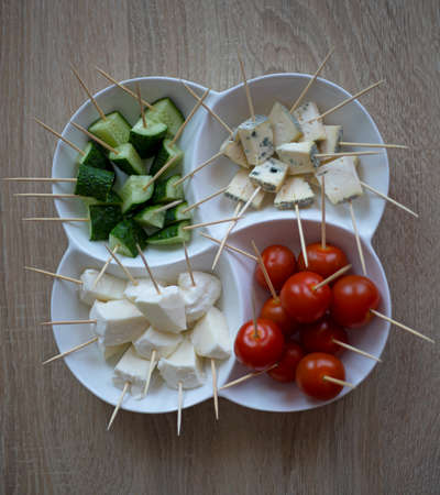 Cherry tomatoes, Cucumbers and Cheese Mocarella (Mozzarella) and Cheese with mold