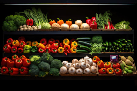 Colorful fresh vegetables are neatly arranged in a designer space, showcasing variety for healthy meal preparation and culinary creativity.