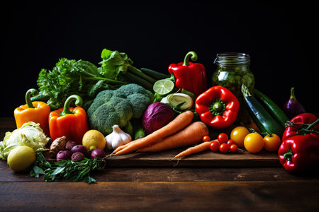Composition with variety of raw organic vegetables and fruits. Balanced diet