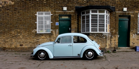 Retro car Volkswagen Beetle in the city street.