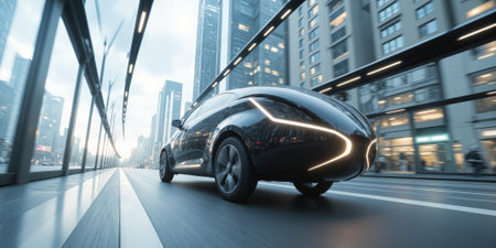 Futuristic Autonomous Car in Modern Setting with Advanced Technology and Sleek Design