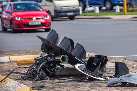 Junkyard of the motorcycle, Car or motorcycle crash. A pile of debris on the roadside.