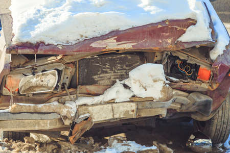 old broken car after an accident in the snow