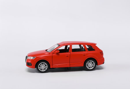 Small red car model isolated on white background