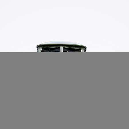 Small black car on beige background, isolated with no shadows, minimalistic concept