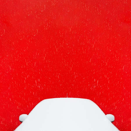 View of a snow-covered car on a background of a red wall during a snowfall. The concept of road safety, gift, christmas, insurance, winter.