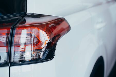 Closeup of car tail light on a white car