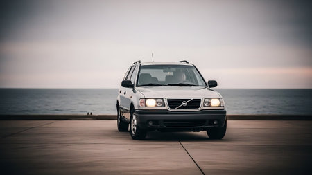 Side view of a modern car on the beach in the evening.