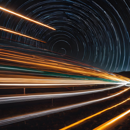 Dynamic light trails with blurred motion create a mesmerizing effect on a dark backdrop