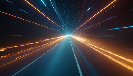 Dynamic streaks of colorful light explode outwards, conveying motion and a sense of rapid advancement. This abstract visual evokes energy and progress.