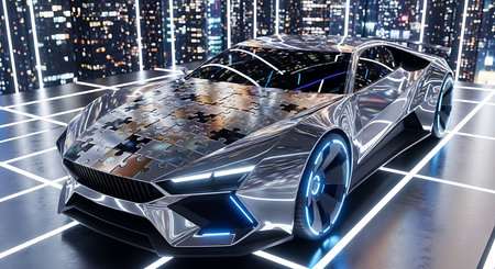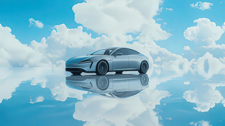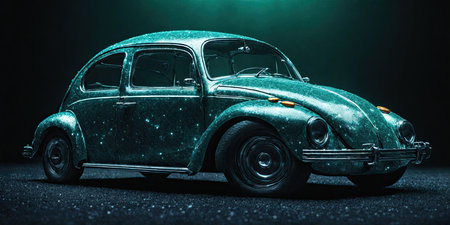 3d AI generated image of a brand-less generic concept car in a sparkling light.