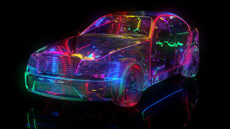 Future Car Software Technology. Self-Driving Car, Autonomous Vehicle, Driverless Car, Robo-Car, 3D illustration, 3D rendering, future car software, all-electric cars.