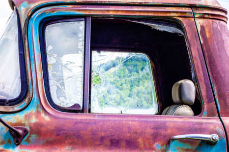 Detail front windshield of an old vintage car.