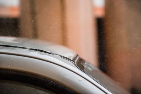 Close up shot of vintage car windscreen wipers.