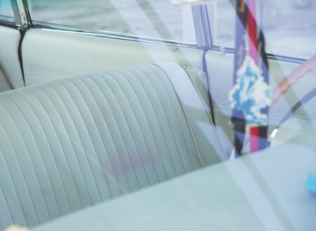 Retro car interior white steering wheel