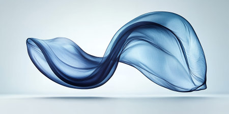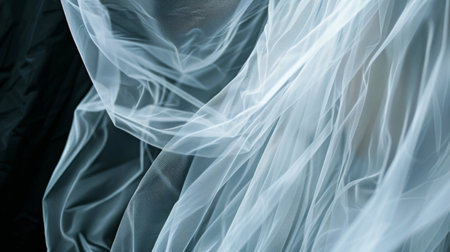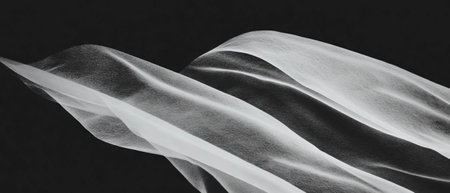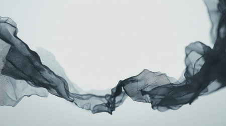 A piece of sheer black fabric flows in graceful waves, highlighted by a thin white outline against a gradient.