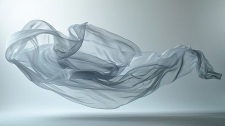 A magical and surreal image captured with a flowing fabric floating in midair suspended by the studio lighting