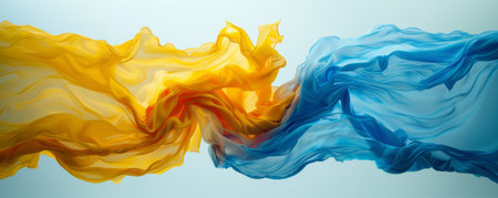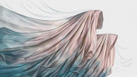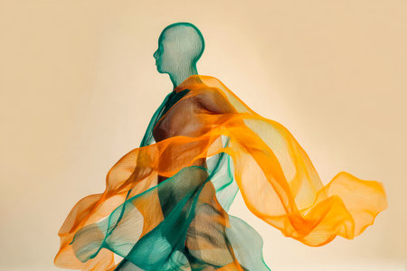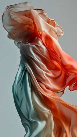 Dynamic double exposure texture of flowing fabric and abstract shapes in fluid motion