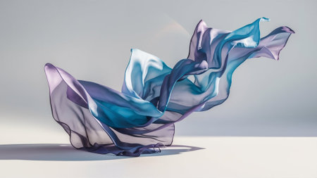 Colorful flowing fabric in mid-air, abstract art. Creativity and modern design concept
