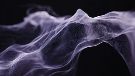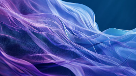 Captivating image of soft purple fabric waves gracefully flowing against a dark backdrop, creating a dreamy and surreal atmosphere full of elegance and movement.