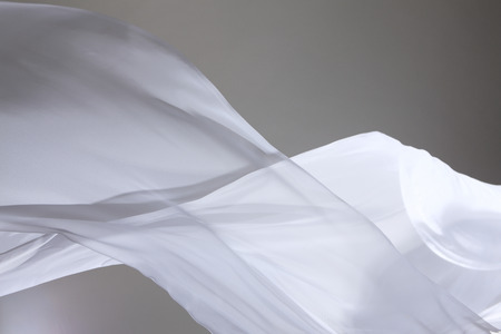 Smooth elegant transparent cloth flying in the wind on sunset sky background