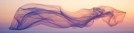 Delicate Purple Fabric Flowing Gracefully in the Wind, Captured Against a Serene Sunset Sky