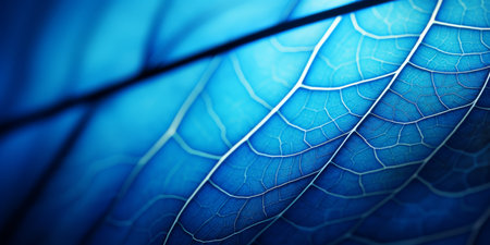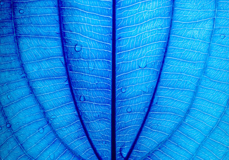 cyanotype. Macro shot of blue leaf texture with veins. Nature background.