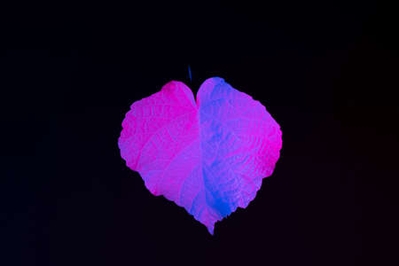 Leaf in pink and blue color. Black background