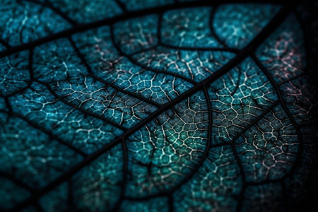 Macro of a blue leaf's skeletal structure