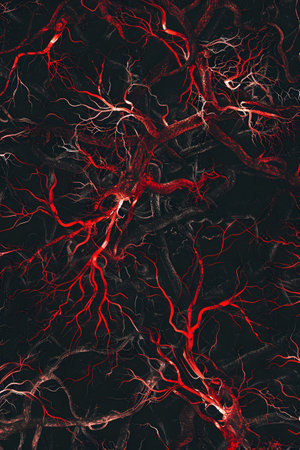 Abstract electric nerves or lightning-style glowing branches over dark background. Sci-fi, energy, or biology themed wallpaper or illustration. Generative AI
