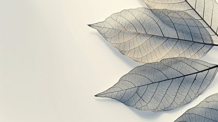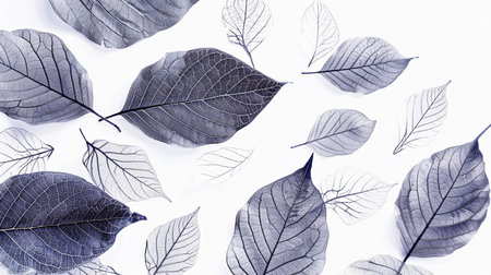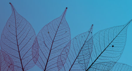 Delicate Transparent Leaves with Intricate Veins on a Cool Blue Background for Calm Scene