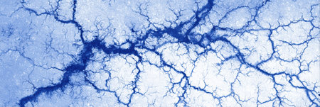 Bright blue patterns reveal intricate cracks that evoke the stunning beauty of icy winter formations.
