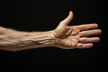 Left arm isolated on black, Male arm part of body, wrist tendon