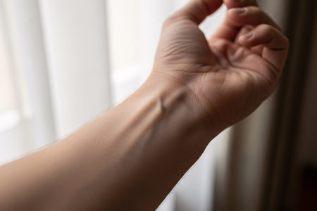 Close-up image of a wrist showing skin texture and underlying veins, highlighting human blood vessel anatomy.