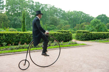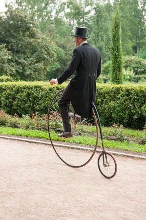 MOSCOW - JUNE 9: Member of the Historic Bike Ride in the park Sokolniki on June 9, 2013 in Moscow. At this event participants in period costumes ride vintage and military bikes 19-20th centuries