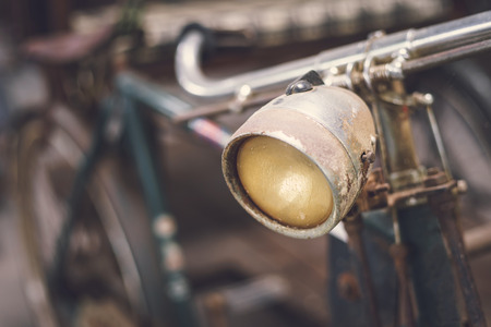 Close up headlight of old rusty vintage bicycle
