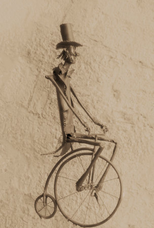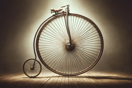 Old fashioned grunge sepia background penny farthing bicycle