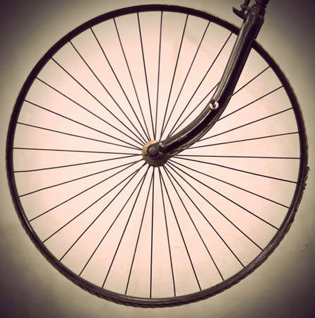 Wheel of ancient bicycle in sepia