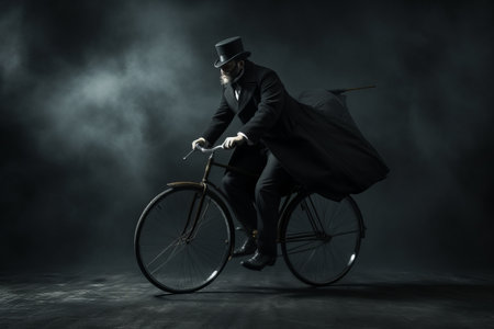 The Enigmatic Figure: Man Riding into the Unknown on a Black Bicycle