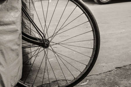 Close up of vintage bicycle wheel