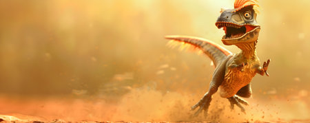 A 3D rendered showcasing a rotund prehistoric Dilophosaurus dinosaur trying to imitate the behavior of a bird by flapping its tiny arms much to the amusement of any onlookers The scene captures the