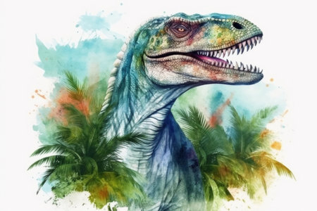 dinosaur in tropical jungle, watercolor style, Generative AI