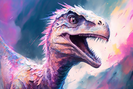 Dinosaur fantasy. Digital painting. Colorful background. 3d rendering