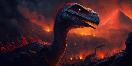 AI Generated. A dinosaur with a mouth open and red tongue