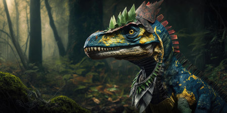 A close up of a dinosaur with colorful paint, AI