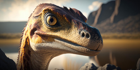Velociraptor in natural habitat, dinosaur wildlife scene concept with space for text