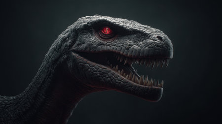 shadow of Deinonychus biting a smaller dinosaur with red light in dark