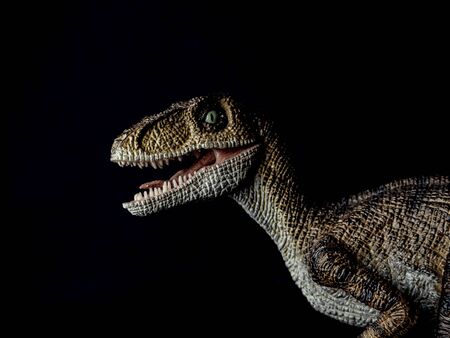3d Illustration pose of deinonychus antirrhopus the most iconic and representative dinosaurs on dark background with clipping path. dinosaurs concept.