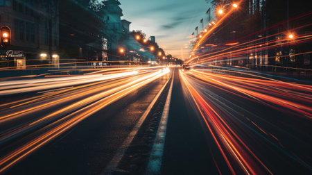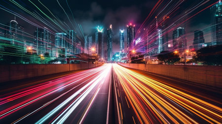 A Colorful Development Foundation of City Light Trails. Creative resource, AI Generated