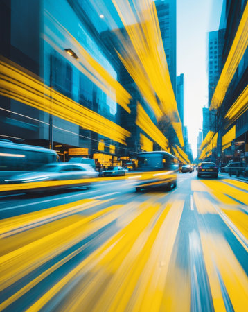 Experience an abstract visual journey capturing the essence of urban energy, where vibrant colors and motion blur create an immersive city ambiance.